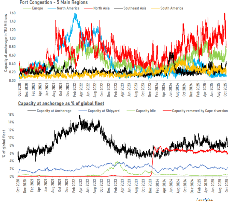 – European port congestion continues to disrupt trade flows, requiring proactive capacity and routing management.
